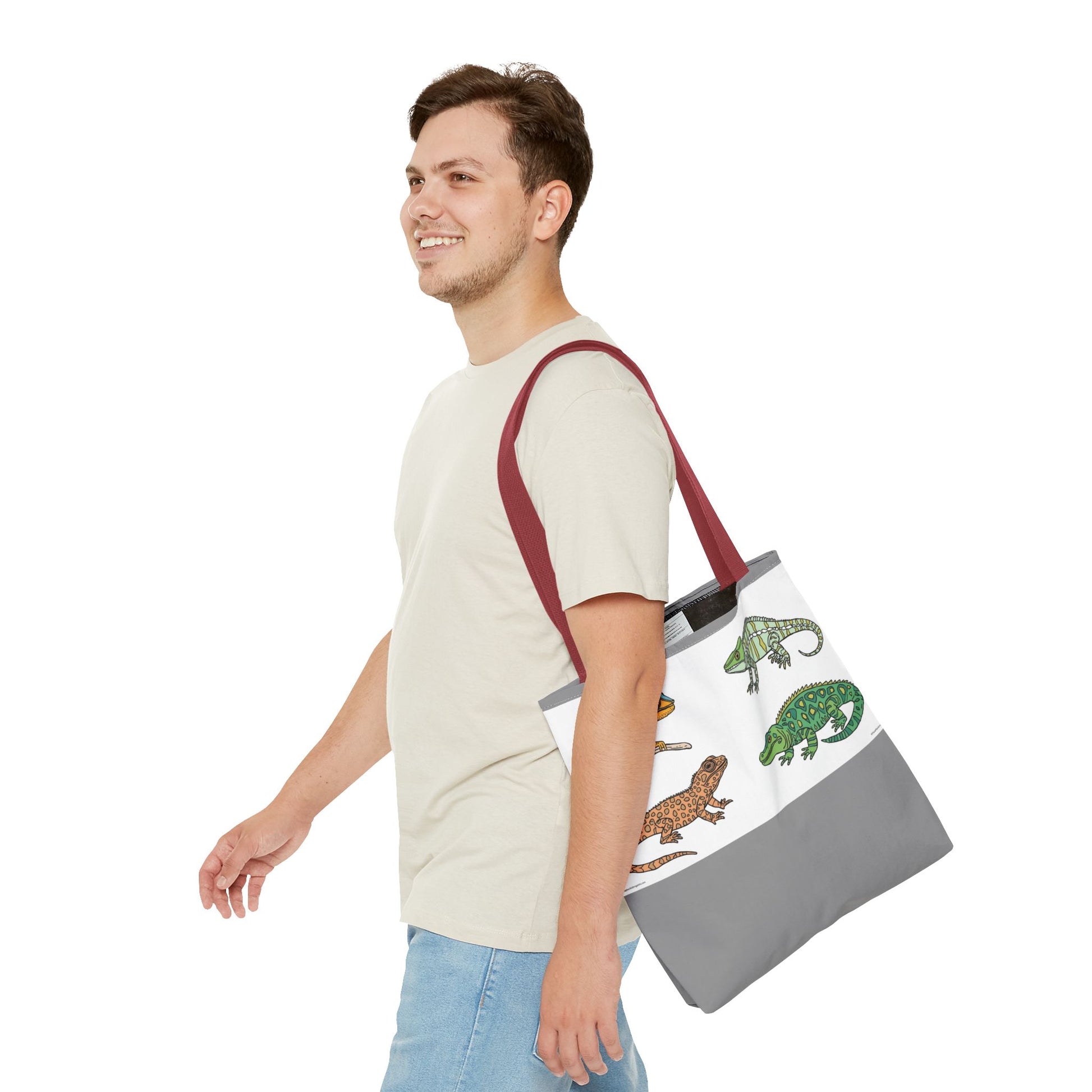 Embrace a vibrant addition to your accessory collection with this stylish tote bag. Perfect for the reptile enthusiast or the nature lover, this bag showcases a fun and colorful design featuring various charming lizards and chameleons. Whether you’re heading to the farmers' market, beach, or just running errands, this tote bag is both practical and eye-catching. Its sturdy construction ensures it holds up to daily use, while its unique artwork brings a splash of personality to any outfit. Ideal for gifting during holidays, birthdays, or just to celebrate your love for wildlife, it’s a thoughtful option for friends and family alike. Carry it with pride and let your love for nature shine!