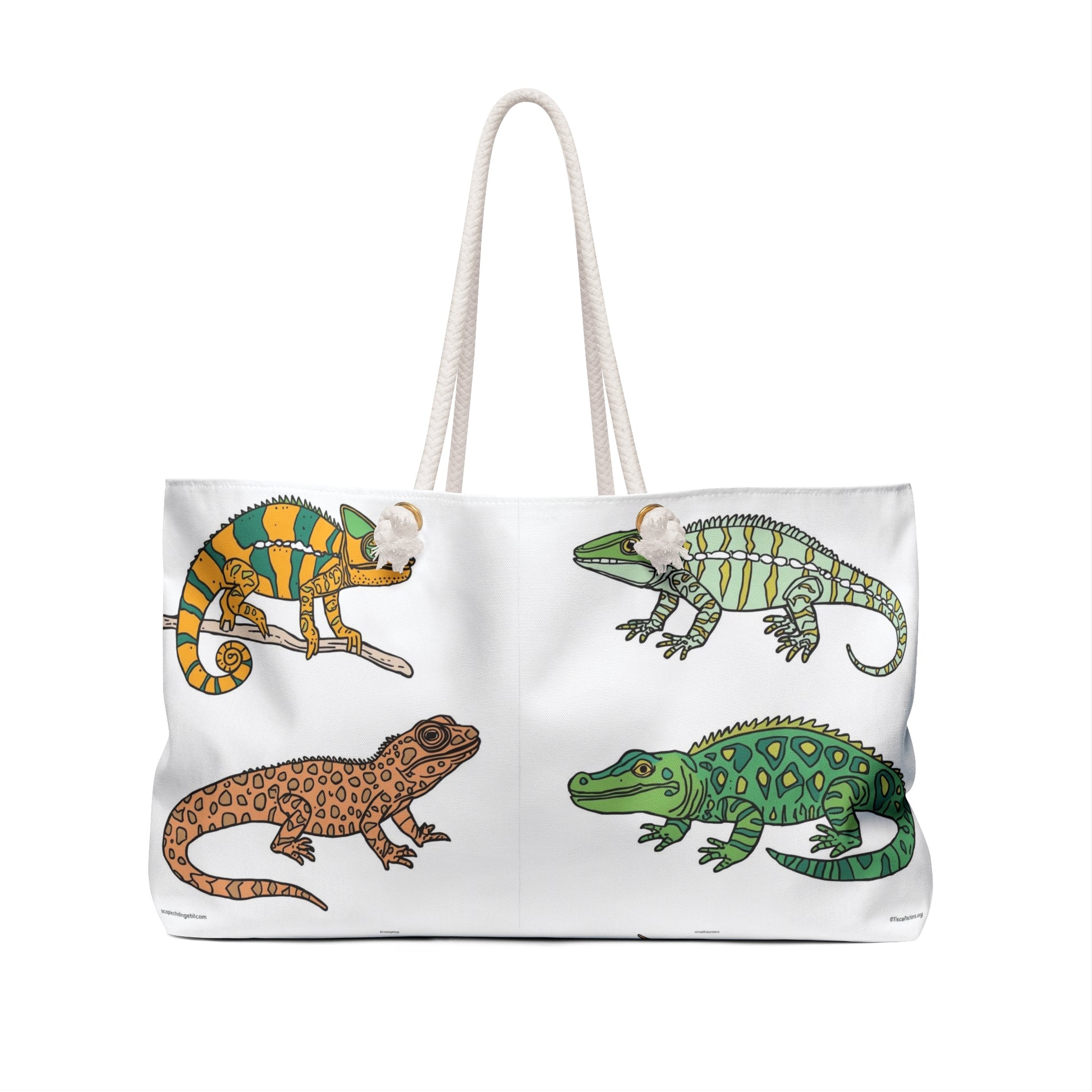 Lizard-Themed Weekender Bag - Perfect for Adventurers, Gift for Nature Lovers, Travel Essentials, Eco-Friendly Tote, Fun Animal Print Bag