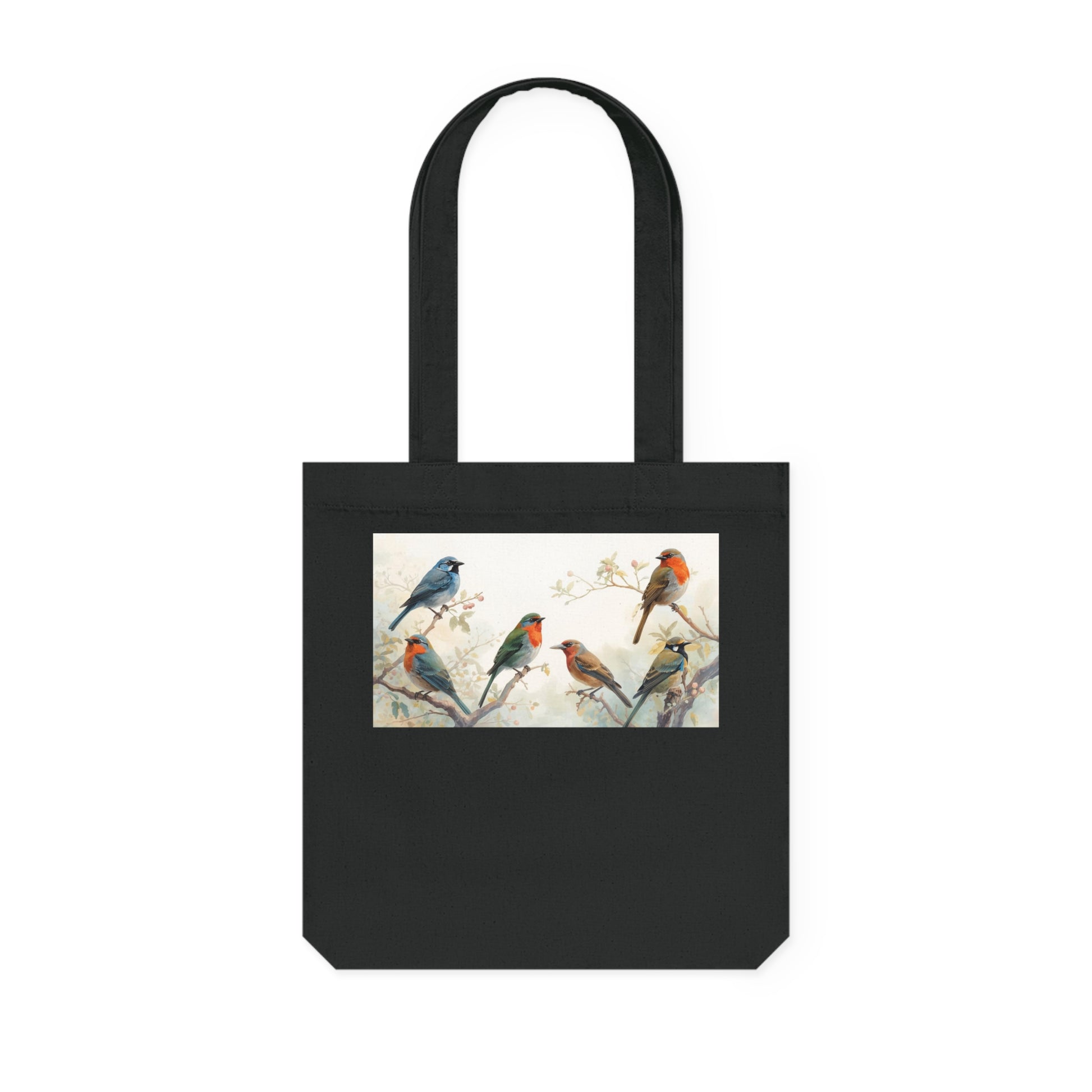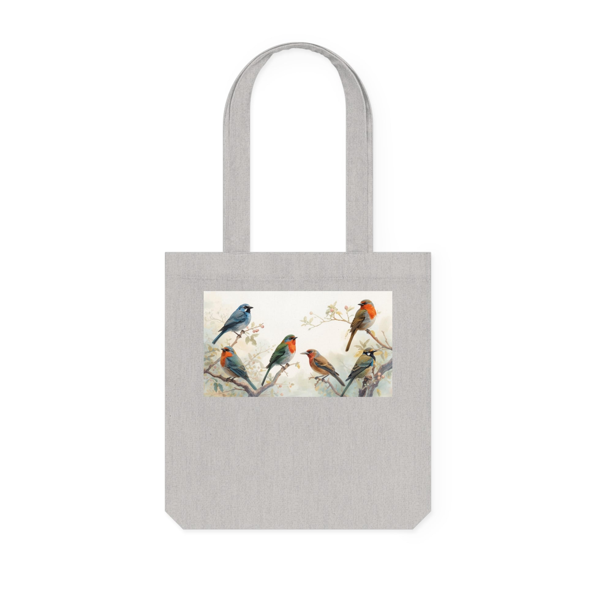 This stylish woven tote bag embodies a perfect blend of functionality and elegance. Crafted from a sustainable mix of 80% recycled cotton and 20% recycled polyester, it offers a soft yet durable texture ideal for daily use. The charming double-sided print showcases delightful bird illustrations, making it a standout accessory for nature lovers. With its spacious design, reinforced handles, and clean double-folded edges, this bag is perfect for grocery shopping, beach outings, or carrying your essentials on a day out in the city. It's not just a bag; it's a statement of eco-consciousness and style. Whether you're treating yourself or searching for a thoughtful gift, this tote is perfect for any occasion—from holidays like Earth Day to everyday adventures. Ideal for environmentally minded individuals and bird enthusiasts alike, it adds a touch of beauty and purpose to every outing.