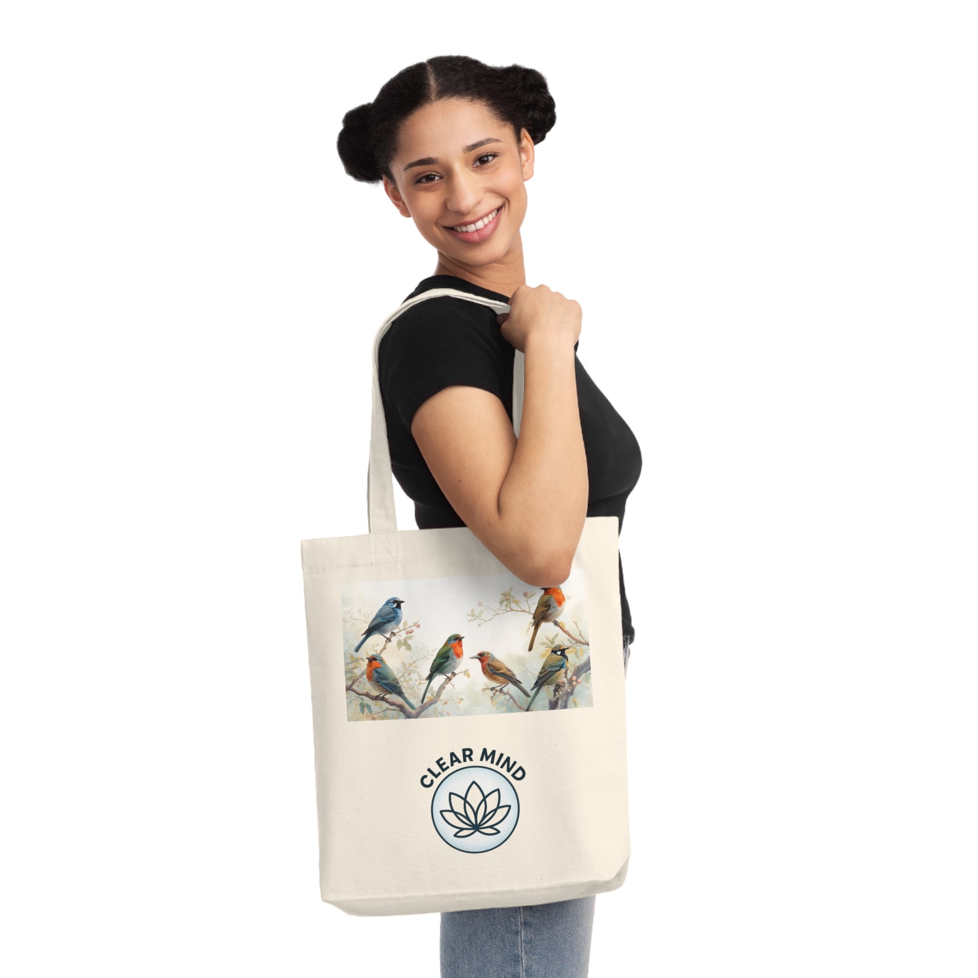 Nature-Inspired Woven Tote Bag | Clear Mind Design | Eco-Friendly Carryall, Shopping Bag, Bird Lover Gift, Gardening Tote, Boho Bag